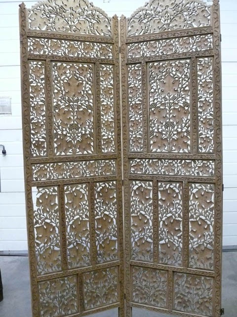 INDIAN FINE CARVED FRETTED TWO LEAF LIGHTWOOD VINE SCREEN