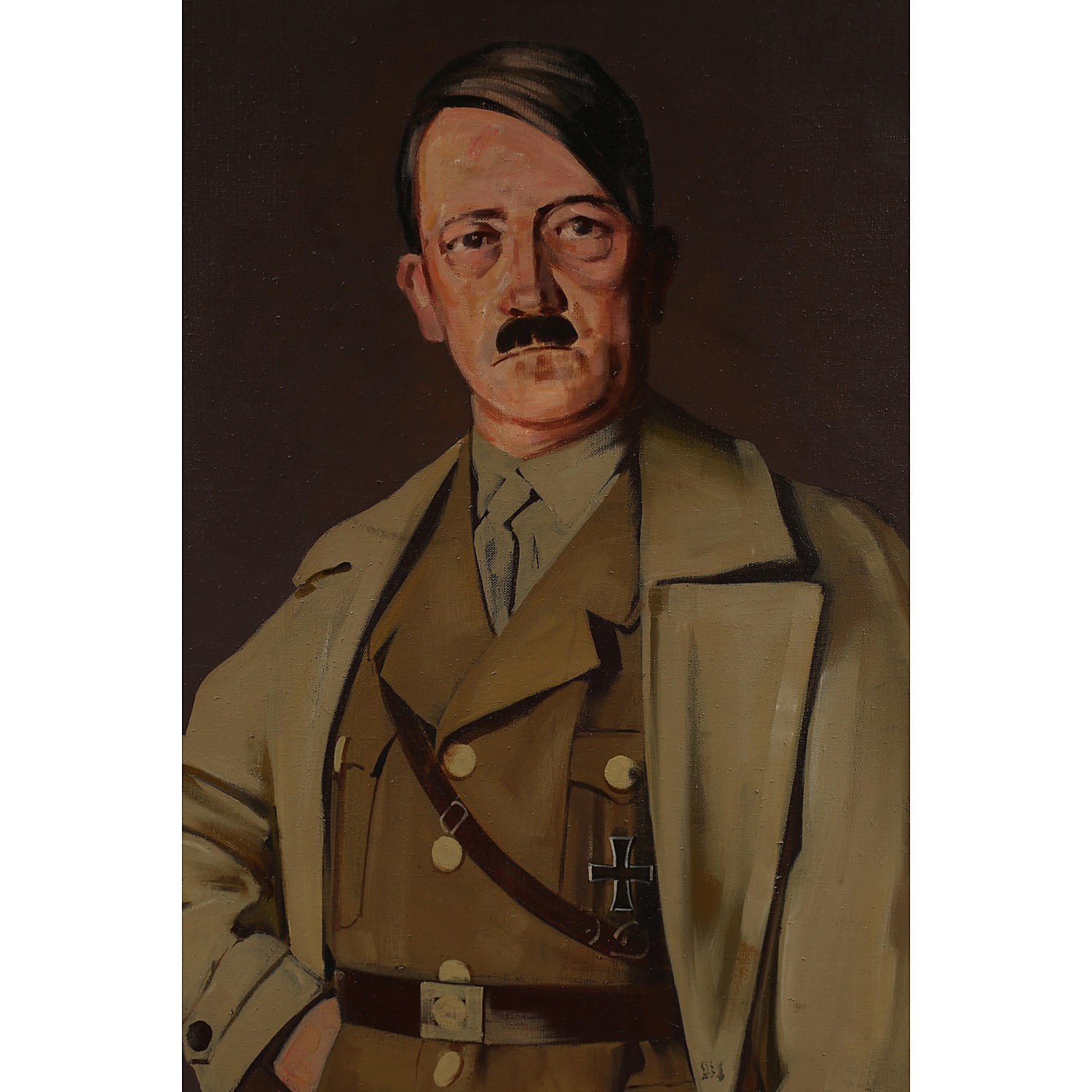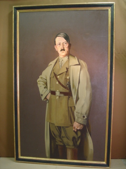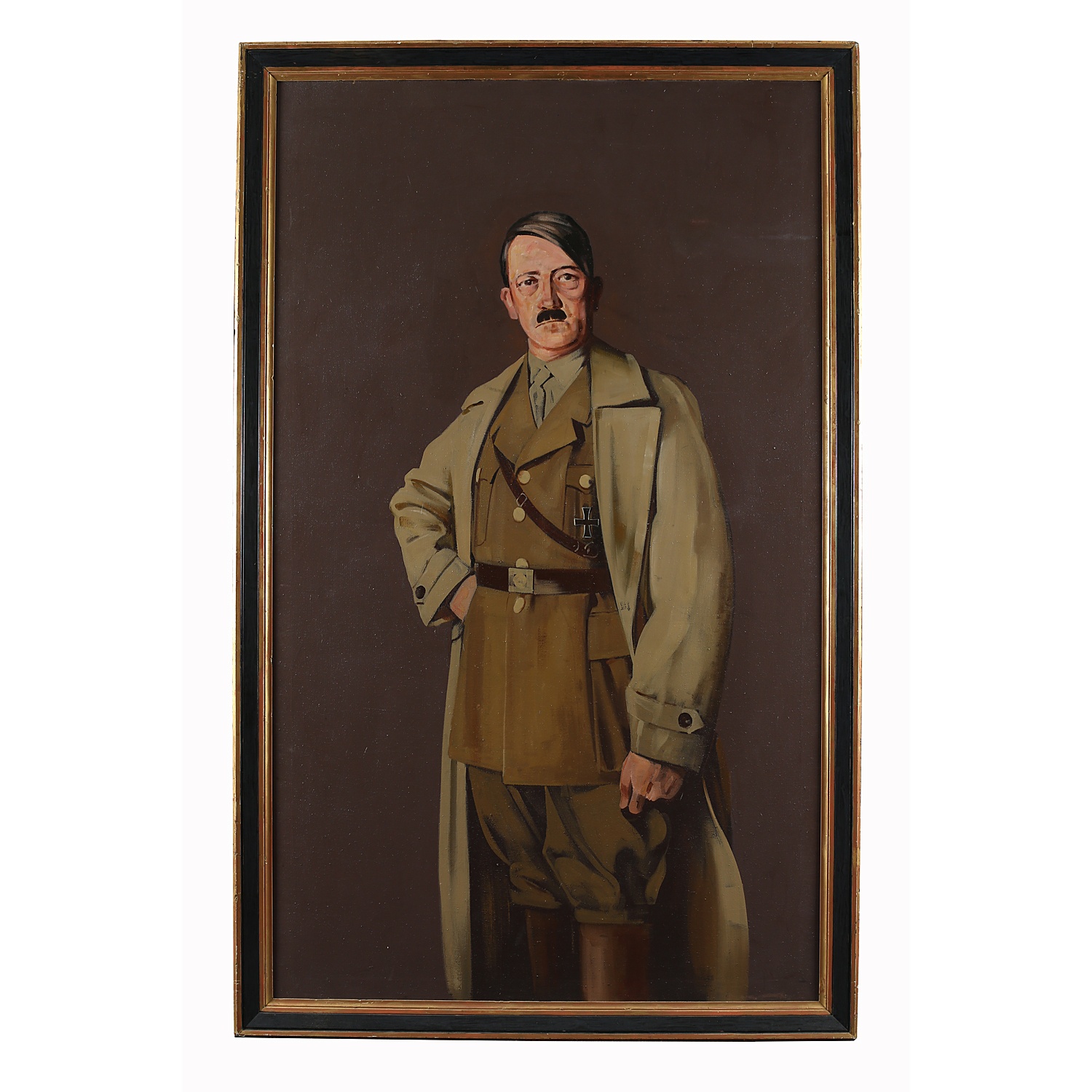 OIL PAINTING 68/i X 41/i FULL LENGTH PORTRAIT OF ADOLF HITLER IN UNIFORM IN A BLACK AND GOLD FRAME